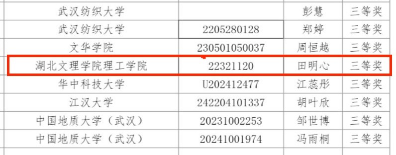 (教育学院 罗娜)11月29日, 2024年大学生创新创业大赛互联网英语听说挑战赛省决赛圆满落幕。经过校赛、省赛两轮竞赛,我们教育学院罗娜老师指导的22级英语专业田明心、23级应用专业秦磊磊经过激烈竞争脱颖而出,分别获得湖北省本科组决赛三等奖和湖北省专科组决赛三等奖。
