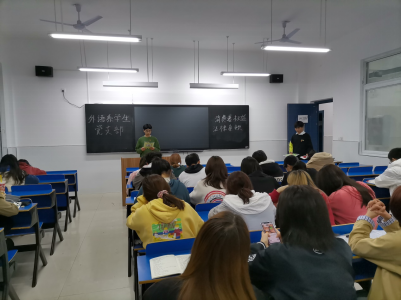 (通讯员 陈佳)3月15日,正值第39个国际消费者权益日,外语系学生党支部开展了以“和谐消费促发展,维权意识进校园”的主题党日活动,外语系学生支部书记张高芬参加此次活动。