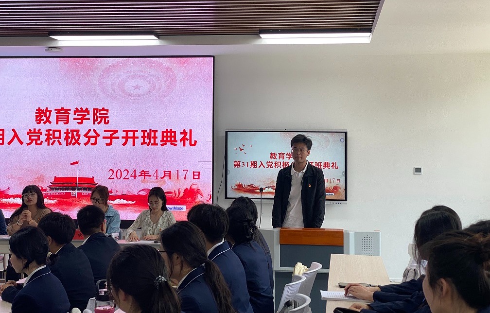 (教育学院 李彬彬)2024年4月17日中午,教育学院第31期积极分子培训班开班仪式在东津校区J12-310举行。