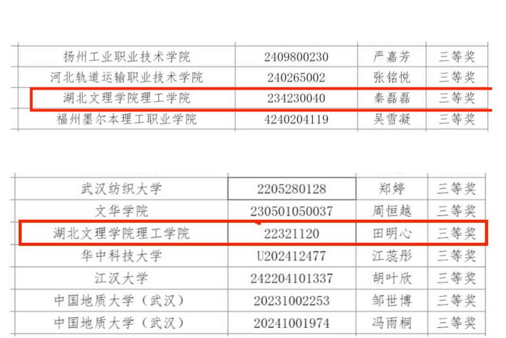 (教育学院 罗娜)11月29日, 2024年大学生创新创业大赛互联网英语听说挑战赛省决赛圆满落幕。经过校赛、省赛两轮竞赛,我们教育学院罗娜老师指导的22级英语专业田明心、23级应用专业秦磊磊经过激烈竞争脱颖而出,分别获得湖北省本科组决赛三等奖和湖北省专科组决赛三等奖。