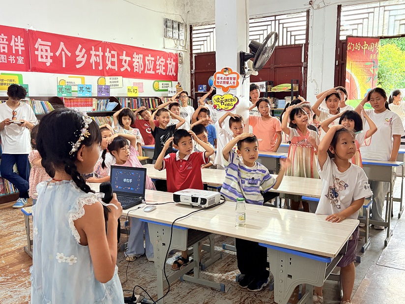 上午10时,开班仪式在图书室正式启动。活动由志愿服务队队长蒲小丽主持。乡村图书室负责人蒙金丽首先致辞,她强调图书室作为乡村教育阵地的重要性,并对理工学院持续多年的志愿服务表示感谢。教育学院党总支书记骆小青表示学院始终秉持“服务社会、奉献爱心”的宗旨,进一步深化校地合作,为乡村振兴贡献教育力量。分团委书记陈倩介绍了本次托管班的课程安排,涵盖红色主题、乐理课堂、趣味英语、健康成长等内容。随后,志愿服务队开展了“击鼓传花”“做相反”等破冰趣味游戏,使孩子们与志愿者迅速熟悉,现场笑声不断,不仅消除了彼此的陌生感,更培养了孩子们的团队协作能力和反应能力。