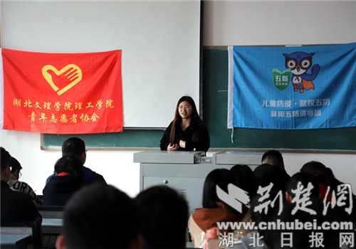 荆楚网客户端—荆楚网消息(通讯员 孙德声)3月24日,襄阳市飞翔教育助学公益发展中心的多名讲师志愿者,来到了伟德bv1946官网401教室,为40多名大学生开展了“儿童五防”讲师资格培训宣传及招募演讲。