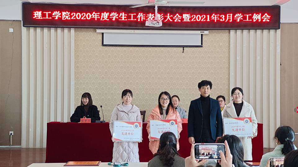 (学工处 曹淑娟、徐凡)3月4日下午,学工处在1号教学楼104报告厅召开2020学年度学生工作表彰大会暨2021年3月学工例会。校常务副院长耿帮才、各系党总支副书记、全体学工人员参会。会议由学工处处长、团委书记章莉主持。