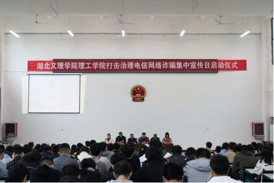 (学工处 张子伟)为进一步做好学校预防网络电信诈骗宣传工作,维护好校园网络金融安全,4月24日下午,学校在一教模拟法庭举办打击治理电信网络诈骗集中宣传日启动仪式。院长助理周伟、襄城公安分局尹集派出所所长周成胜、我们保卫处、学工处工作人员、各系党总支副书记、各分团委书记以及辅导员代表参加启动仪式。