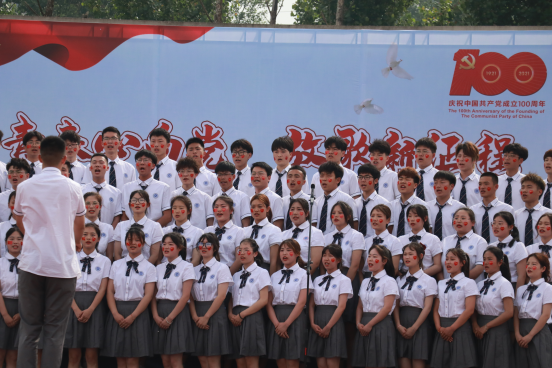 师生参赛队伍深情演绎了16首经典红歌,《没有共产党就没有新中国》唱出了亿万人民的心声,表达了人民对党的深厚情感;《黄河大合唱》旋律高亢,唱出了中华民族的气势,唱出了中国人民的力量;《人民军队忠于党》《强军战国》歌声激昂,唱出了中国的底气,唱出了军威国威;《我们都是追梦人》《少年》唱出了时代节奏,唱出了年轻奋发力量,唱出了中国的希望……一个个耳熟能详的故事,一首首滋润心田的歌曲,在师生饱含深情的歌声里,让我们重温了党的100年的奋斗史,让我们对中国的复兴更加充满希望。