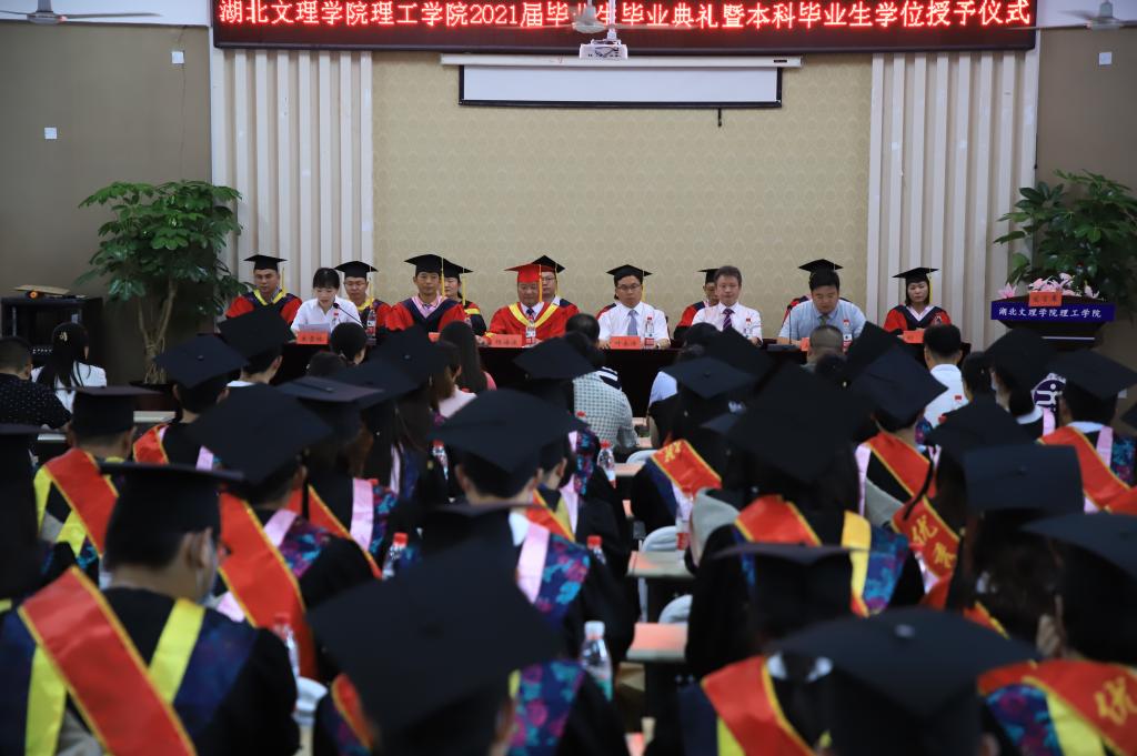 (大学生记者 王军童)6月15日上午,学校一教104报告厅内音乐欢快,掌声阵阵,气氛祥和喜庆,2021届毕业生毕业典礼暨本科毕业生学士学位授予仪式正在这里举行。学校领导、各职能部门负责人、各系领导班子、毕业班辅导员以及优秀毕业生代表参加典礼。毕业典礼由常务副院长耿帮才主持。