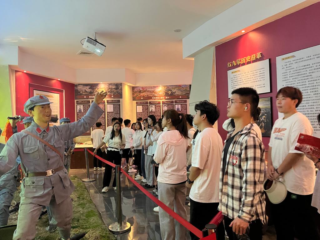 在向湾村红色文化纪念馆,听讲解员生动讲述革命先烈的故事,跟随讲解员的步伐,我们团学队伍来到向湾村烈士陵园,红九军二十六师革命烈士纪念碑高高耸立,附近的烈士陵园苍松掩映、庄严肃穆,昨日战场的硝烟炮火仿佛就在眼前浮现。团学干部们整齐列队,高声齐唱中华人民共和国国歌,为中国人民解放事业和共和国建设事业英勇献身的烈士默哀。