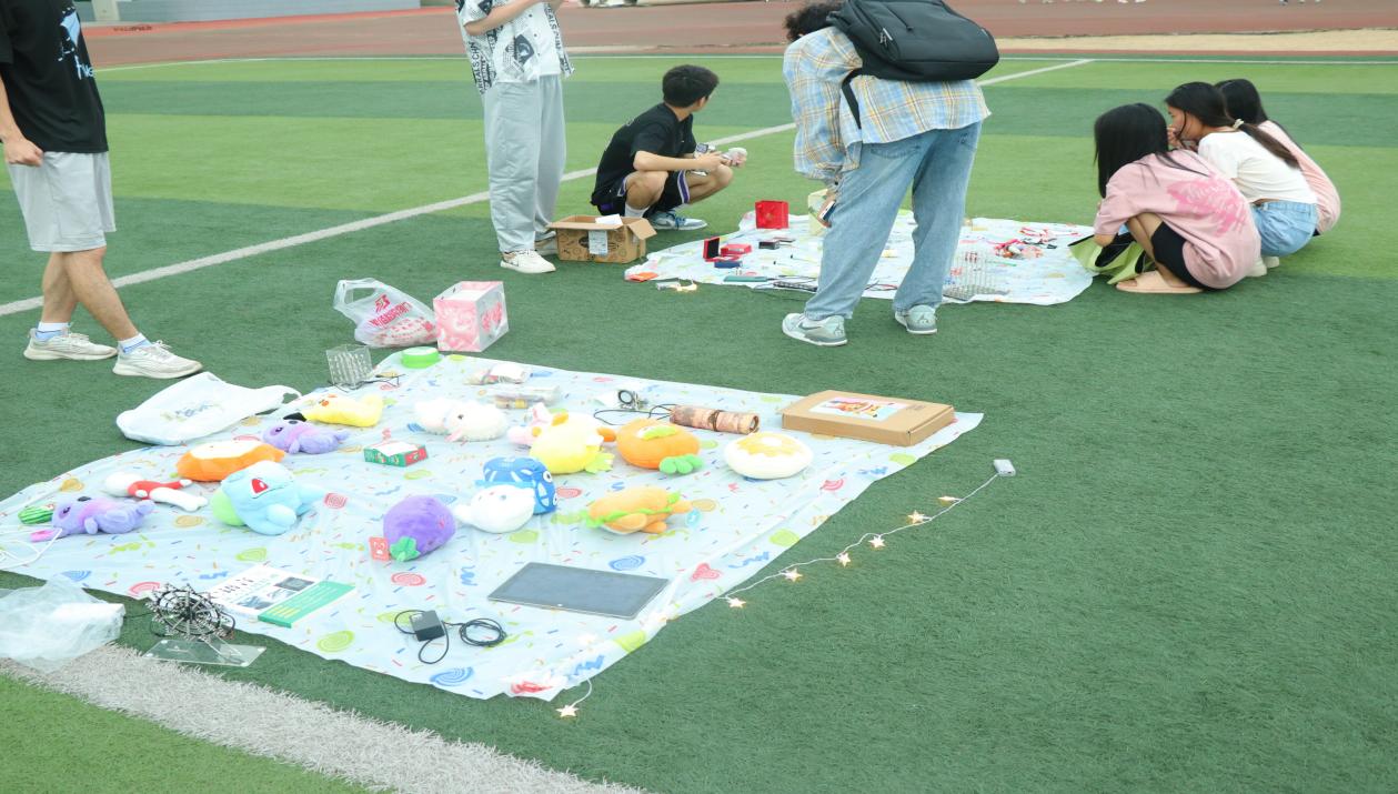 (学工部 梅秋思 张金霞)为推动学校对学生寝室进行半军事化管理,倡导学生环保节约意识。学生工作部于5月30日下午在田径场开展校园跳蚤市场活动。整齐的摊位在田径场呈U字形排列,学生穿梭在人群中挑选着琳琅满目的商品,一场关于旧物新生物尽其用的活动在校园内如火如荼的进行着。