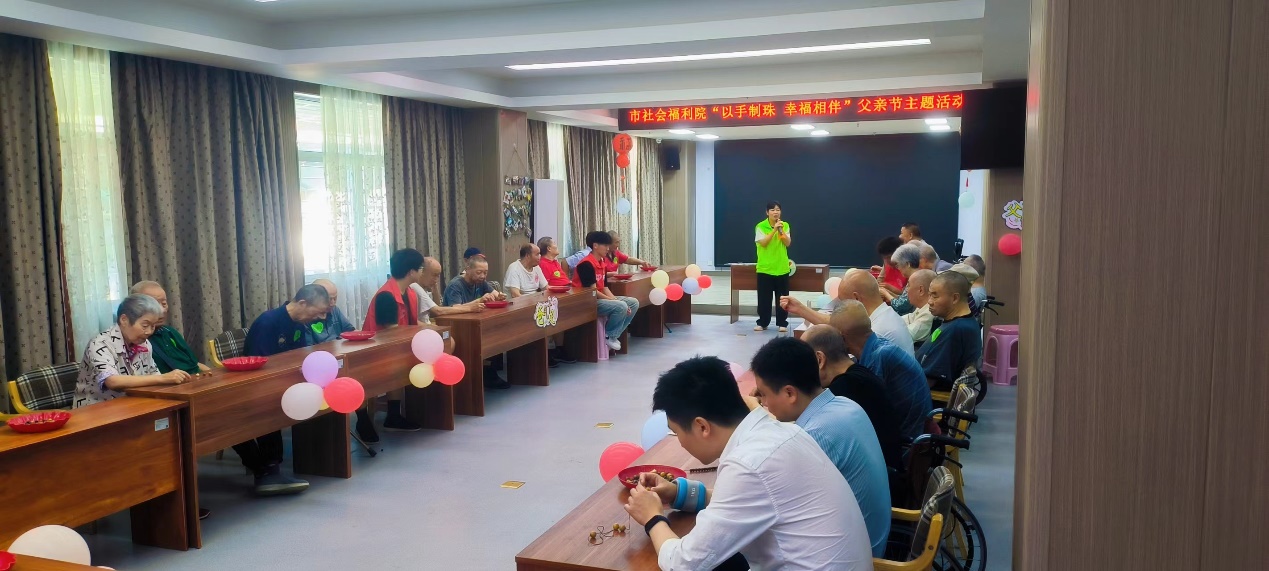 (青志协 陈瑞、刘灿灿)2024年6月14日下午,在父亲节即将到来之际,伟德bv1946官网青年志愿者协会联合襄阳市民福社会工作服务中心开展了"以手制珠,幸福相伴"主题活动,与院内的爷爷们共同度过了一个难忘的下午。
