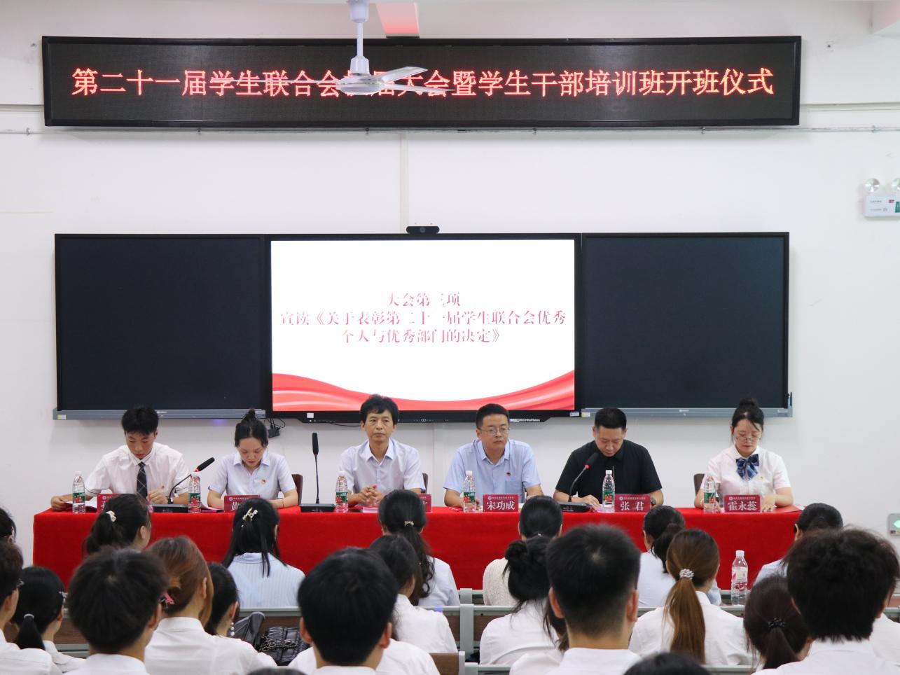 (通讯员 杨丽华 郑侄)9月5日,第二十一届学生联合会换届大会暨学生干部培训班开班仪式在1教105教室举办。副校长耿帮才,学生工作部部长、团委书记宋功成,学生工作部副部长、东津校区管委会副主任张君,以及各二级学院党总支书记、分团委书记出席本次会议,第二十一届团学干部代表和第二十二届全体团学干部参会。会议由学生工作部副部长、团委副书记黄洁主持。