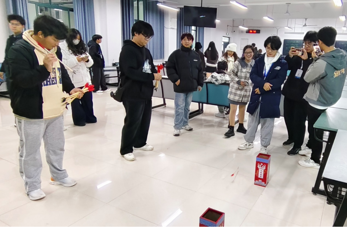 此次活动以“青春动漫嘉年华—-走进二次元的奇幻之旅”为主题。动漫社成员们还精心布置了多个主题展区,带领观众穿梭于不同的动漫世界,感受经典动漫作品的独特魅力。游戏区无疑是本次活动的焦点之一,投壶小游戏则将传统文化与二次元主题相结合,每次精准投中的喝彩声更是将现场气氛推向高潮。现场气氛热烈,欢呼声、加油声此起彼伏,参与者们在游戏中充分展现出青春的活力与激情。