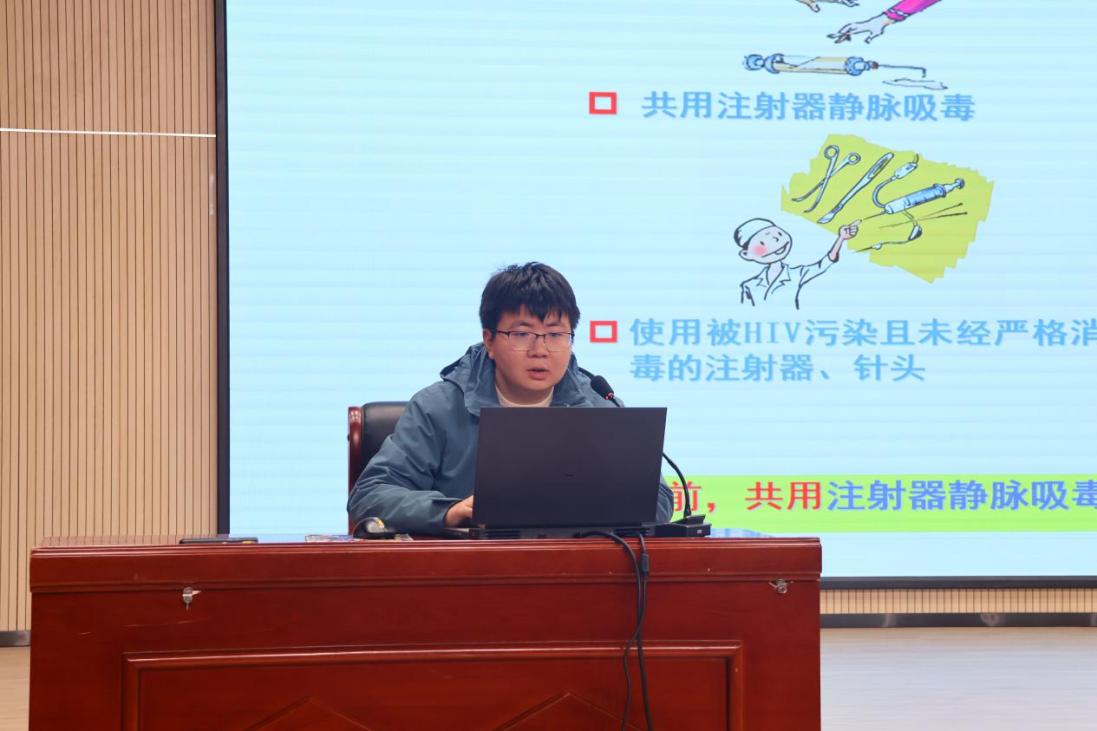 讲座邀请市疾控中心艾滋病防治领域专家作为主讲嘉宾,围绕艾滋病的传播途径、预防措施以及当前的有效治疗手段等方面进行讲解,并通过案例分析让同学们更加了解艾滋病的危害。