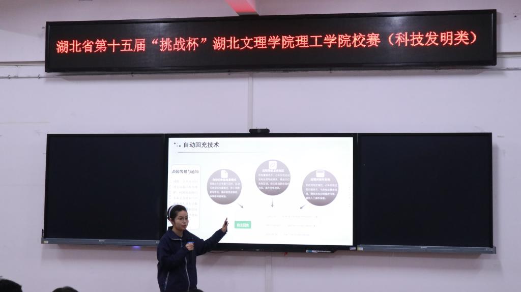 (通讯员:杨丽华)3月13日,伟德bv1946官网顺利举办湖北省第十五届“挑战杯”大学生课外学术科技作品竞赛校级选拔赛。本次比赛分设科技发明类与调查报告类两个专场同步进行,共收到73项参赛作品,其中科技发明类34组、调查报告类39组。