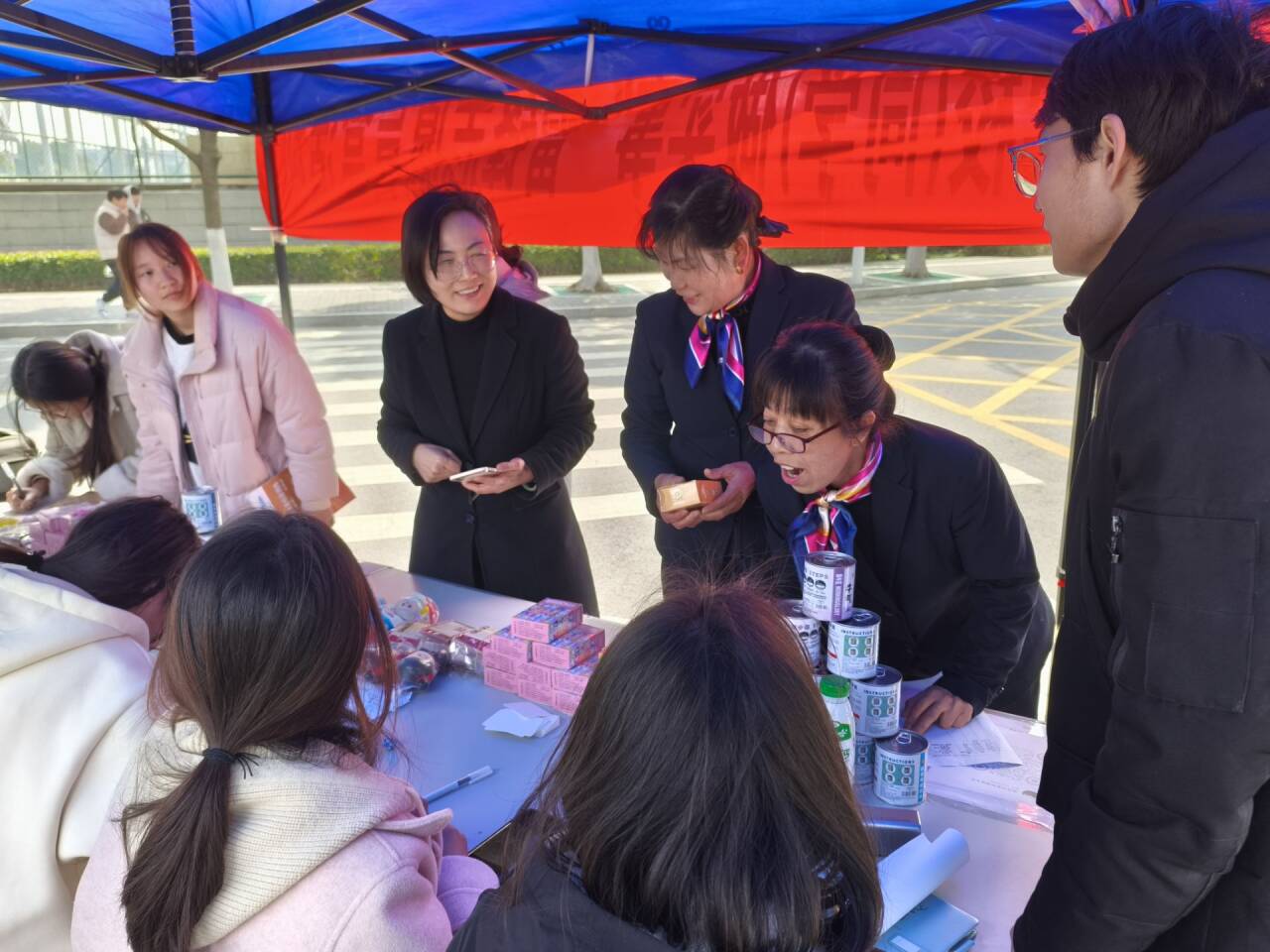 活动首日,学生公寓区的蓝色帐篷格外引人注目。学生工作部部长、团委书记宋功成与物业员工驻足活动展台,在志愿者引导下亲身体验“盲盒挑战”,参与分享雷锋事迹、直饮机清洁等实践活动。宋功成表示:“这种沉浸式志愿服务既传承了雷锋精神,又培养了学生的社会责任感,是劳动教育的生动实践。”
