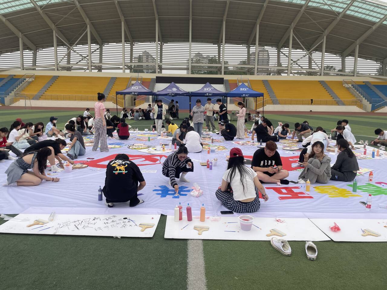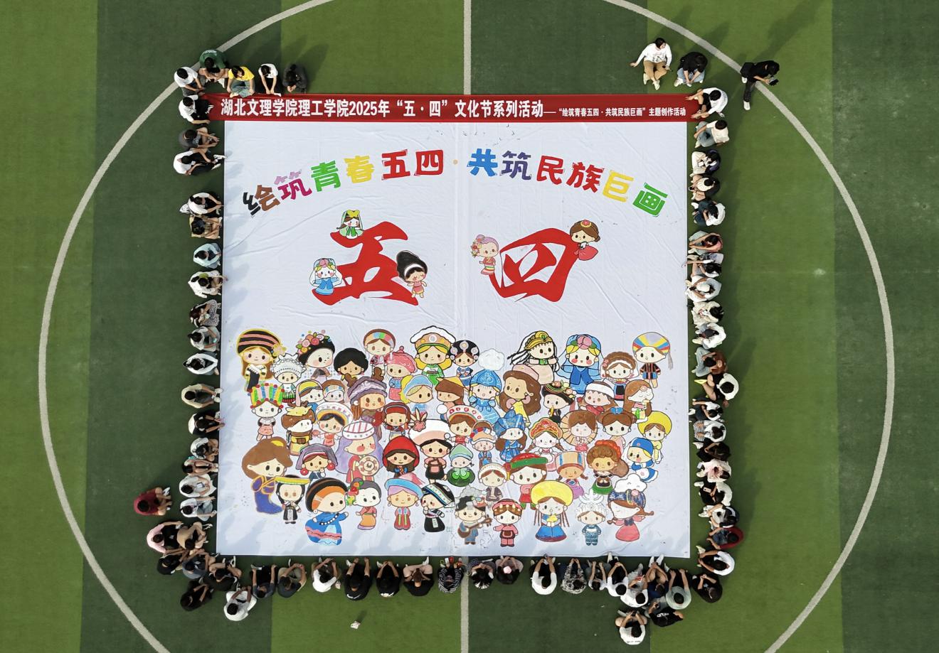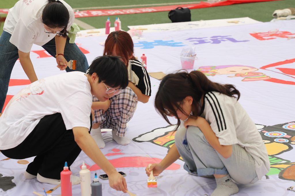 (通讯员 杨丽华 刘晔 郑侄)5月17日,校团委在田径场组织开展了五四系列活动之——“绘筑青春五四·共筑民族巨画”主题实践活动。百余名青年学子以画笔为媒,耗时6小时共同完成了一幅面积达100平方米的民族主题巨画,用青春创意诠释五四精神与民族交融的深刻内涵。