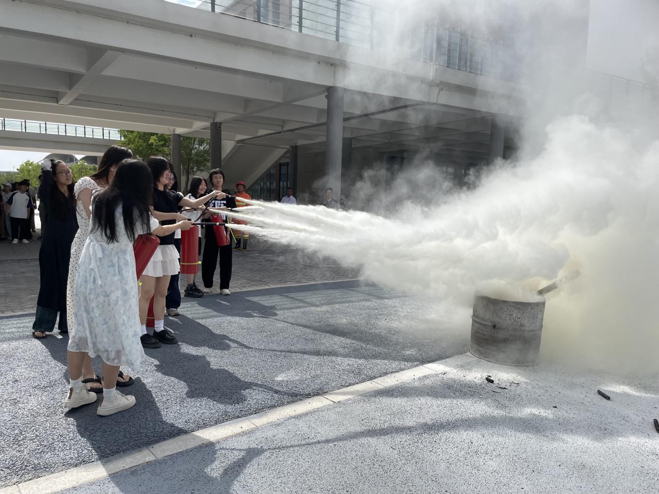 居安当思危,防患于未然,安全文化扎根校园。此次演练于1号教学楼旁设灭火实操区,消防人员讲解示范灭火器用法,邀学生体验。“理论+示范+实践”沉浸式教学,让消防知识化为直观操作技能,切实增强师生火灾初起阶段应急处置与自救互救能力。
