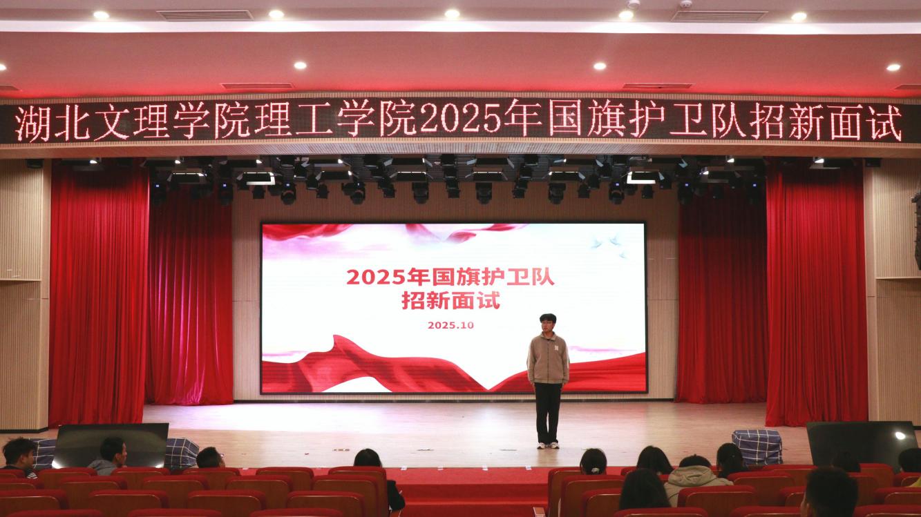 (通讯员 肖慧珍)为进一步加强我们国旗护卫队队伍建设,传承爱国主义精神,展现青年学子昂扬向上的精神风貌与使命担当,10月16日至19日,我们学生工作部开展2025年国旗护卫队招新工作。本次招新工作由校团委书记、学生工作部部长宋功成,学生工作部部长助理肖乃傲,国旗护卫队总教官担任评委。