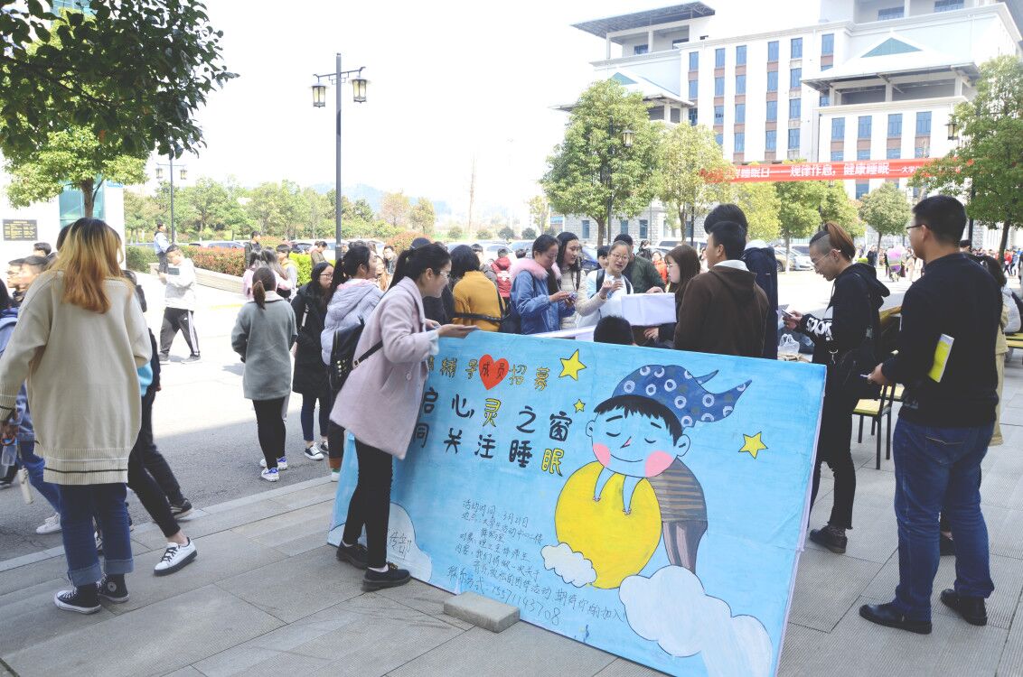 2018年3月21日,国际睡眠日,伟德bv1946官网大学生心理健康中心为了响应“良好作息,健康睡眠”的主题,号召大学生关注睡眠问题。组织了室外和室内的活动。在一教的展台,我们设置了“扫一扫”,“抽号码”等各种形式的抽奖活动并为同学们设置了丰厚的礼品。我们还将玩乐与音乐相结合在展台处放置了各种乐器,让同学们体验音乐带给我们的愉悦。同学们都玩的不亦乐乎。