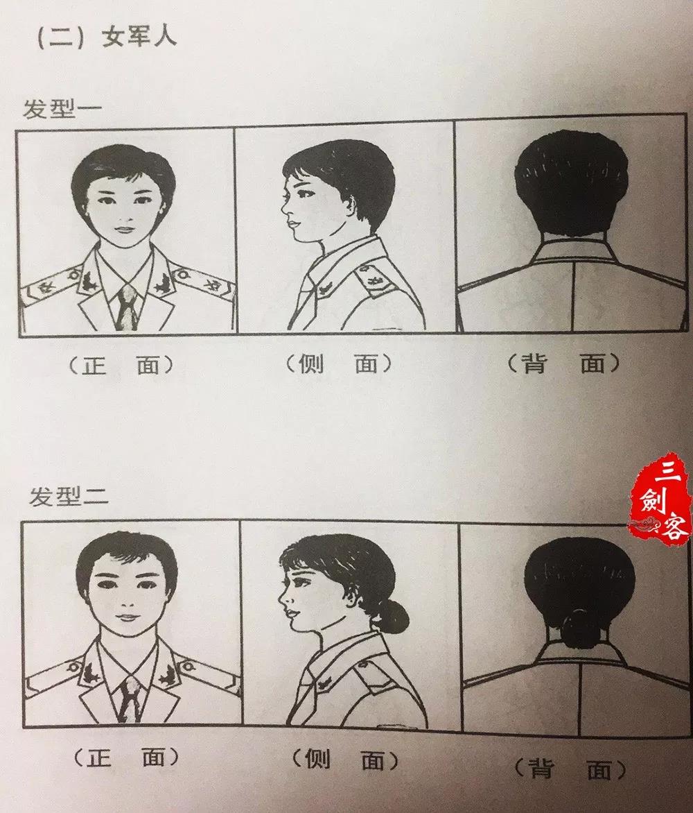 男军人不得蓄胡须,鬓角发际不得超过耳廓内线的二分之一,蓄发(戴假发)不得露于帽外,帽墙下发长不得超过1.5厘米;女军人发辫不得过肩。军人染发只准染与本人原发色一致的颜色。”