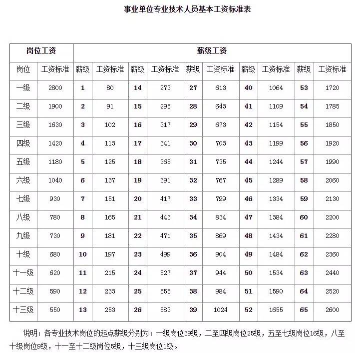 (2015年标准)比如一名文职人员的岗位和薪级分别是13级和65级,那么他的工资应该是:550+2600+(550+2600)*15%+绩效工资和津贴补贴=3540+绩效工资和津贴补贴。