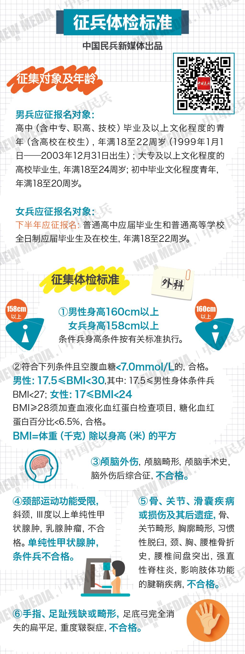 下半年应征报名:普通高中应届毕业生和普通高等学校全日制应届毕业生及在校生,年满18至22周岁。