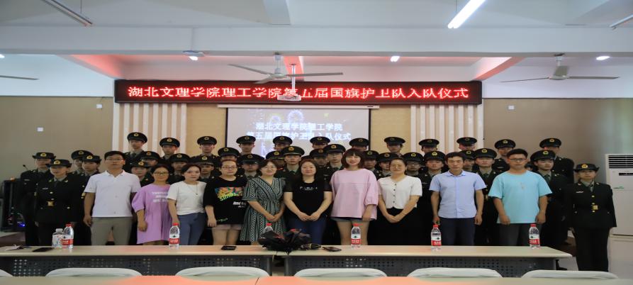 (学工处  蔡明霞)6月30日中午,我们第五届国旗护卫队入队仪式在一教104报告厅举行。学工处处长、团委书记、武装部副部长章莉,学工处副处长、团委副书记桂梦怡以及各系党总支副书记出席了本次活动。仪式由武装部蔡明霞同志主持。