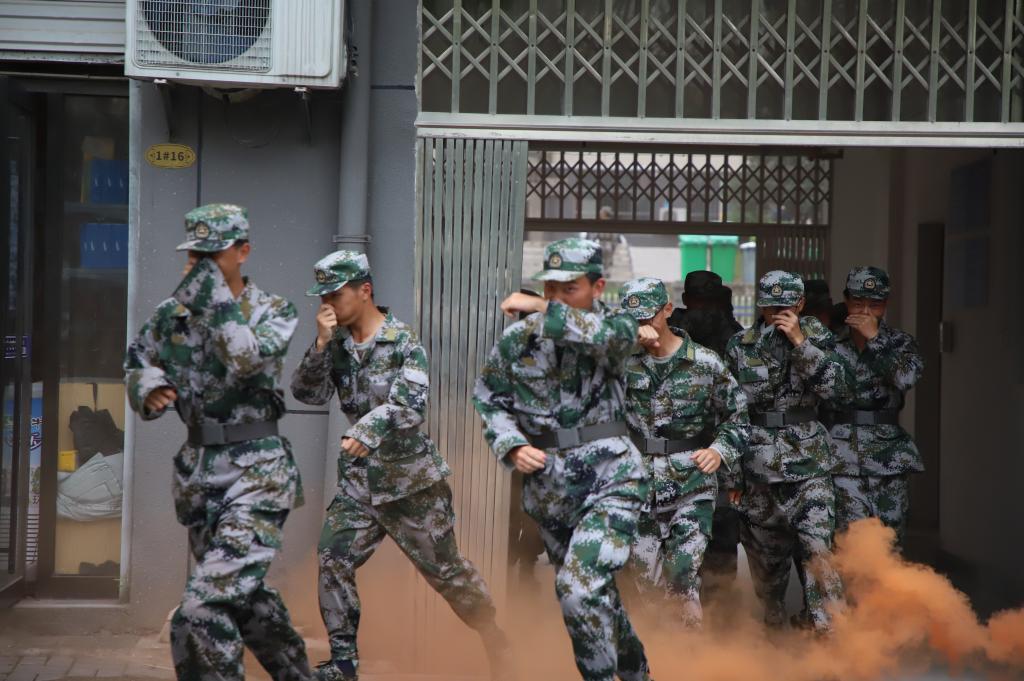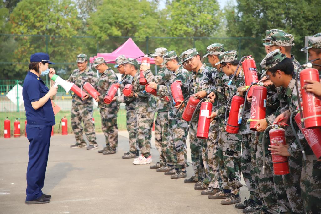 随后,教师代表和新生代表在军训团团长蔡明霞同志的指导下,沉着镇定地开展灭火演练,迅速扑灭火情。