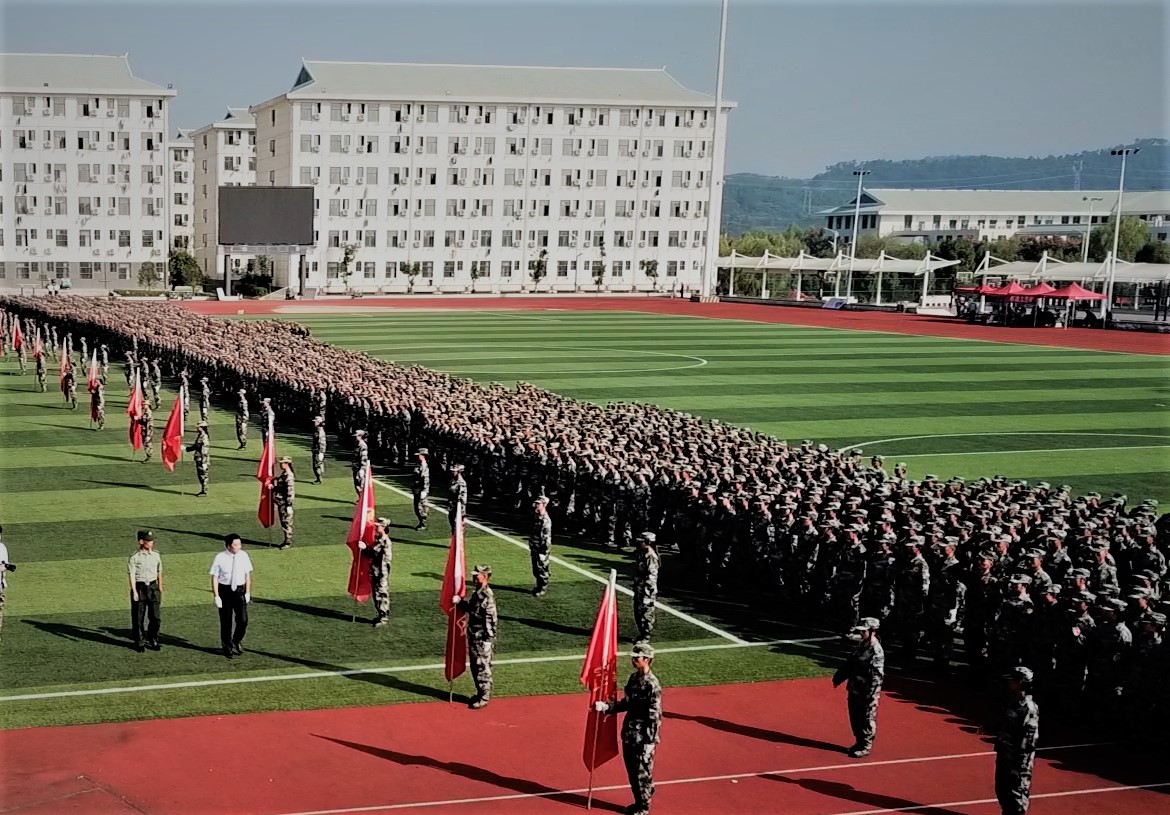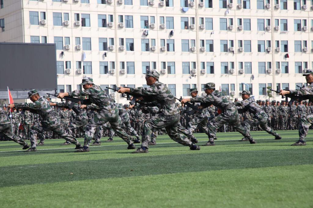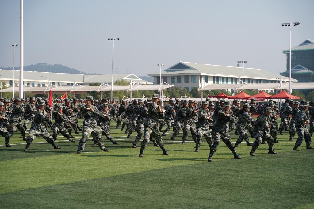 在校旗的指引下,2021级新生们踏着铿锵有力的步伐,吼着响彻云霄的口号,扬起坚毅的面庞,挺起坚实的臂膀,以15天来烈日下挥拳踢腿的汗水,留下此刻主席台前铮铮身板下的自信昂扬。而后精彩的队列队形表演、刺杀操表演和擒敌拳表演,再次让2021级新生的飒爽英姿给观礼师生留下深刻印象。