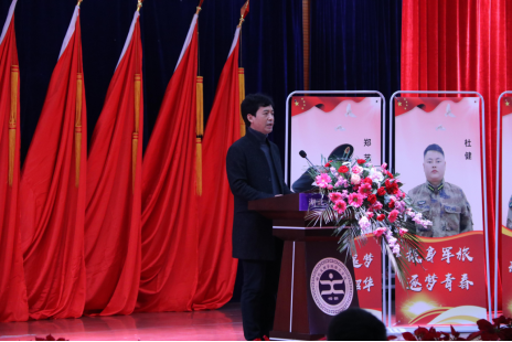 宣讲会在征兵宣传片播放中开始。耿帮才代表学校致辞。他指出,国防教育是全体学生的必修课,征兵工作是治国安邦的大事,是加强国防和军队建设的迫切需要。他希望同学们能积极参军入伍,在部队这片沃土上尽情翱翔,实现人生理想和抱负。