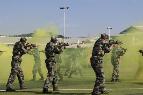 随后进行的表演更是精彩连连。560人的方阵表演变化迅速而整齐,摆出的“1949-2022”“喜迎二十大”等造型生动形象,令人称奇;标兵班动作整齐划一,规范标准;铁拳连拳拳生风,招招利落;战术表演动作紧凑,配合默契,反恐擒拿场面震撼,赢得了观礼师生经久不息的喝彩声。