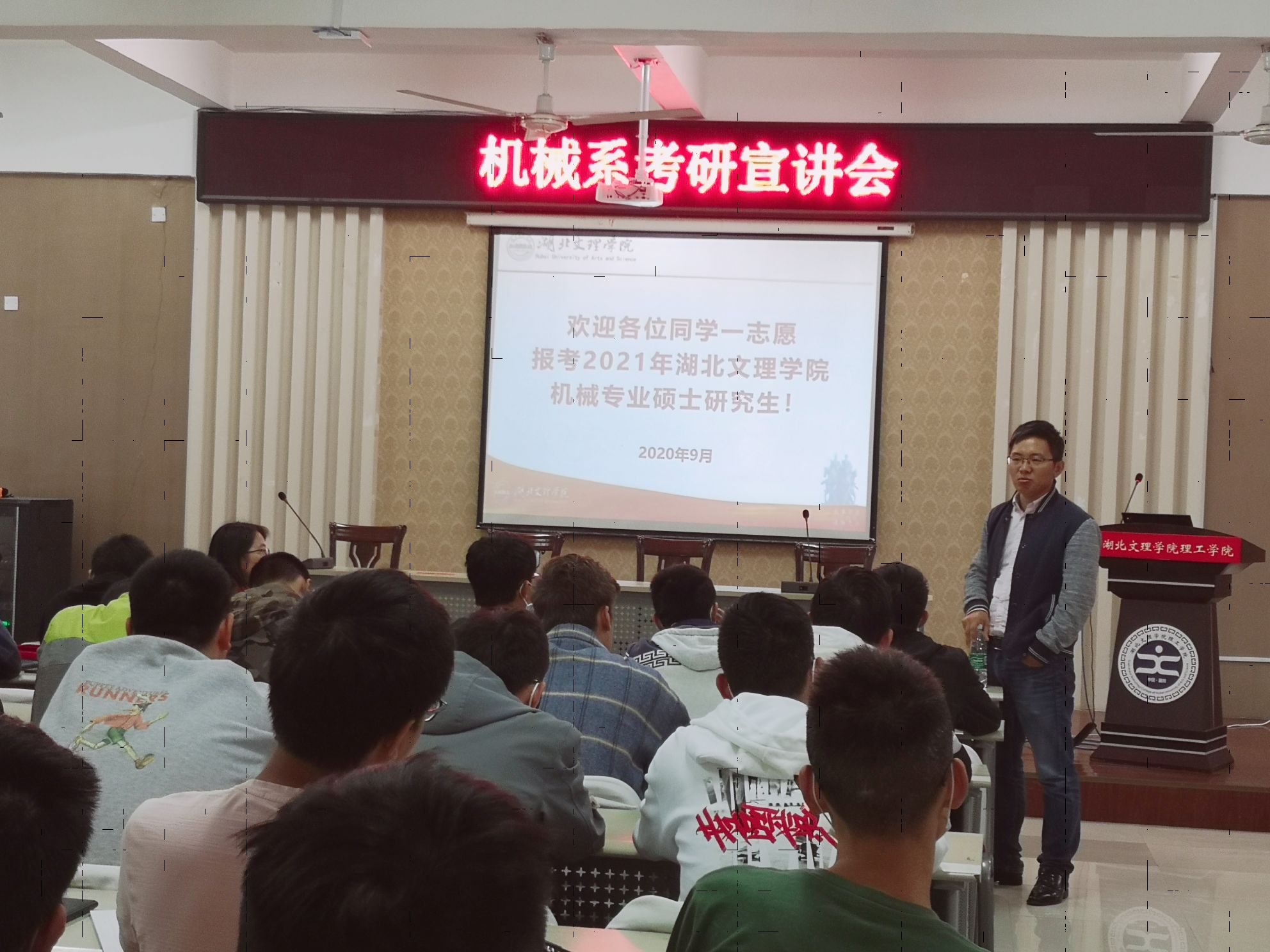 为加强学生对考研政策的了解,明确考研目标,掌握相关考研技巧,9月23日下午,机械系在一教104报告厅召开了考研宣讲会。湖北文理学院机械工程学院副院长王中任,我们机械系党总支副书记刘晓君出席宣讲会。