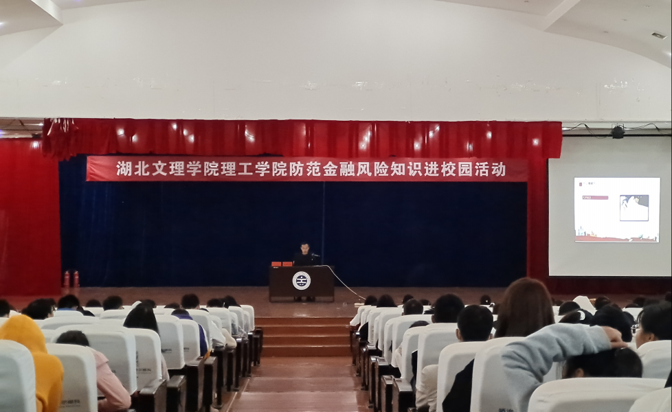 为提高学生防范金融风险意识,普及金融知识和网络安全常识,11月20日下午,学校在大学生活动中心三楼报告厅举办了“防范金融风险知识进校园”讲座。此次活动邀请到襄阳市打击和处置非法集资领导小组办公室工作人员王丽娜、襄阳市百龙律师事务所执业律师唐磊主讲。