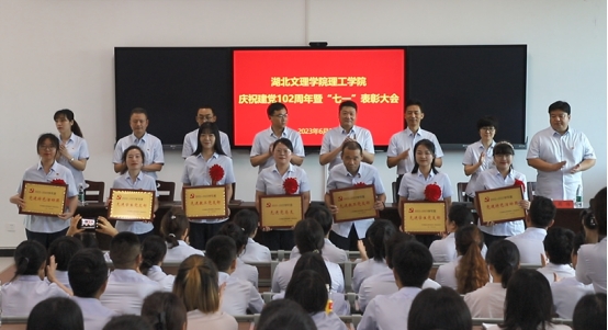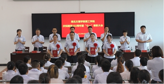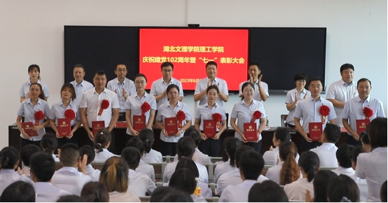 会上宣读了《关于2023年“七一”表彰的决定》(院党综[2023]15号)。经各基层党组织推荐,组织部组织评议、评审,学校党委研究,决定授予经济与管理学系党总支“先进党总支”称号;授予外语系教工党支部等4个党支部“先进党支部”称号;公共课部与文法系学生党支部等2个党支部“党建特色奖”;授予朱靖等66名同志“优秀共产党员”称号;授予王春柳等9名同志“优秀党务工作者”称号。