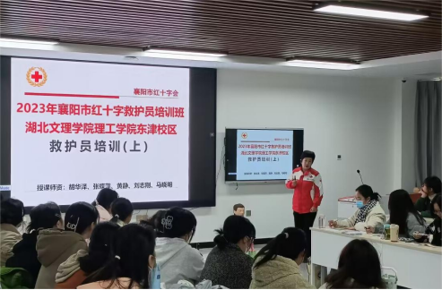 为彰显红十字“人道、博爱、奉献”精神,动员和凝聚更多的青年力量关心支持参与红十字事业, 11月19日上午,我们文法系在东津校区12教310教室开展了“守护生命健康·沐浴青春阳光”生命安全知识讲座。襄阳市红十字聚仁救援志愿服务队的老师进行讲授。