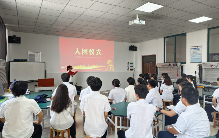 在团旗下,新团员们身着整洁的校服,举起右手庄严地宣读了入团誓词。