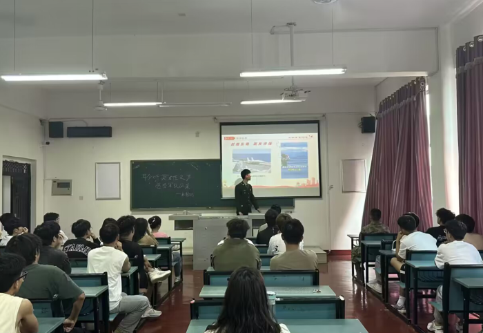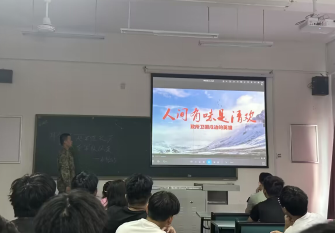三位学长都是军人退役,戎装虽脱,本色不改,他们依旧保持着军人的本色。他们以图片和视频的形式讲解了部队严格的纪律以及恶虐的环境,他们有在海拔5000米高处坚守中印边境,大雪封山,零下30℃,停止供暖坚守一个月;有在黄沙漫天的地区一个月洗一次澡;有在陆军特战队集训,深山7天7夜不给食物存活下来,但是他们都坚定表示今退役,志不改,国有召,必归营。他们的品质和精神无不触动着学弟学妹们的的身心,同学们也对未来生活学习有了新规划,几位对参军有意向的同学也更加坚定了参军想法。