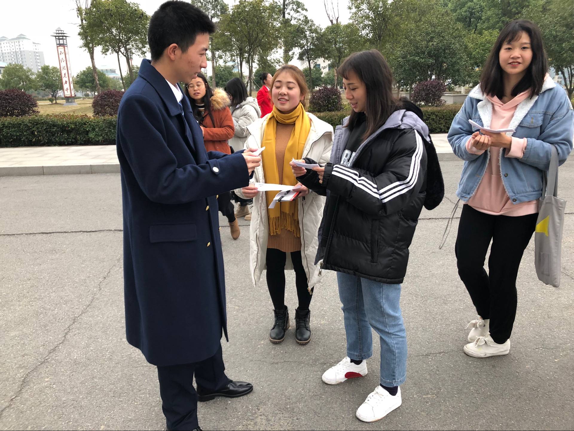 2018年11月19日,第七小组在襄阳市万达广场进行“创文”相关知识宣传活动。从坐上公交车开始,组员们便展开了活动,在公交车上向市民宣传相关知识,宣传过程中同学们采访了一位老爷爷,当问到襄阳近年来有哪些变化时,他说:“襄阳这几年变化十分大,交通变得更舒畅,道路也变得更加清洁,人们随地吐痰,乱扔垃圾的现象几乎都看不到了,城市保洁做得很到位了。这都是我们国家的功劳。”最后,同学们在大街小巷进行了创建文明城市的宣传,与市民互动,呼吁大家共同行动,为创文贡献出自己的力量。