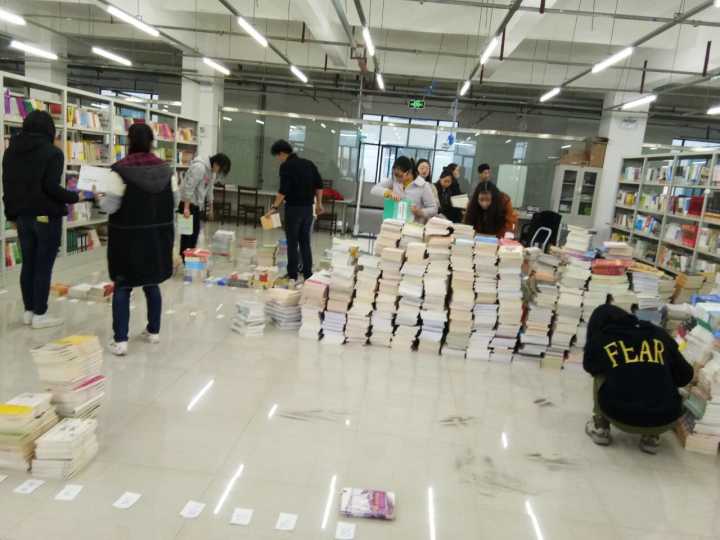 2018年11月15日下午,第三小组组织来到学校图书馆帮助图书馆负责老师进行书籍分类。面对堆成小山的书,组员们并没有知难而退。随着书籍编号越来越多,有时候想要找到对应的编号便很难,每个人都在不停的蹲下,找书,起立,放书。负责老师见组员们都很积极地工作,说道:“之前我们图书馆三个人,一早上才能分一小堆书,你们今天是帮了大忙呀!辛苦你们了!” 。