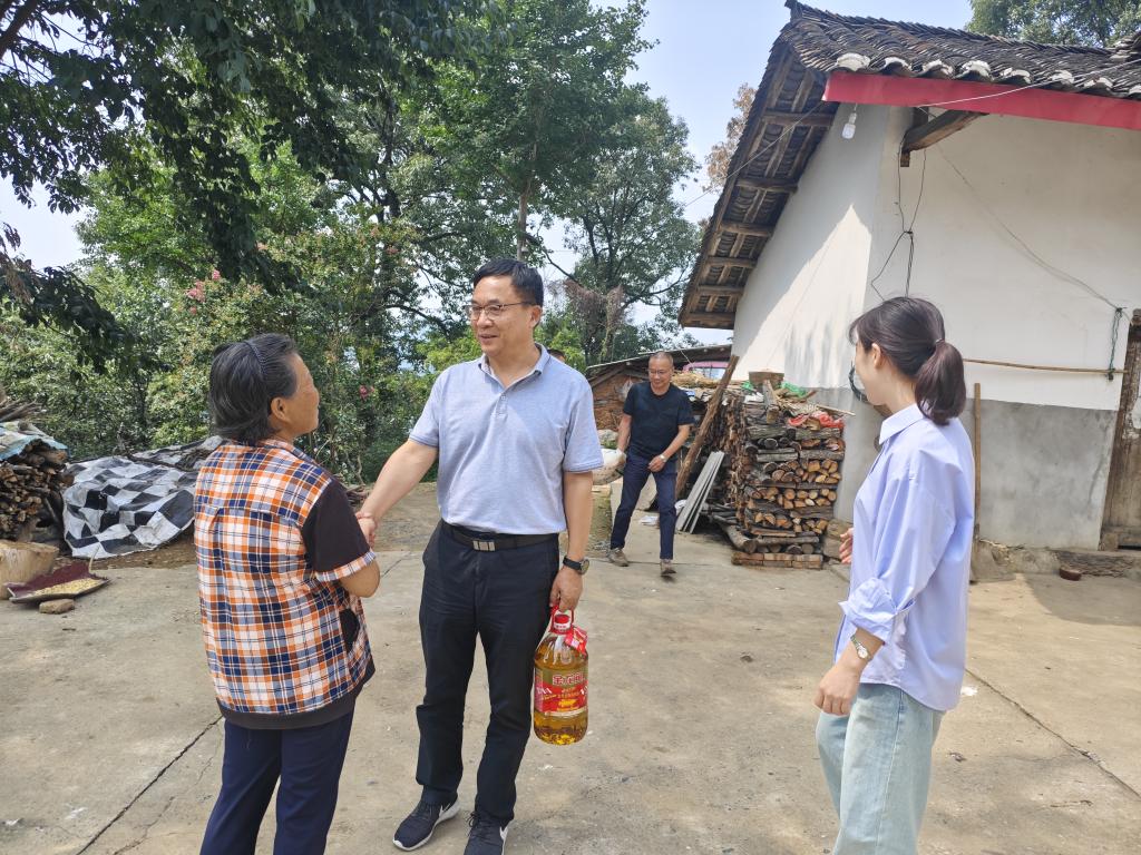 6月24日,党委书记叶永涛等前往南漳县傅家坪村看望慰问学校乡村振兴驻村工作人员以及村里的困难党员。