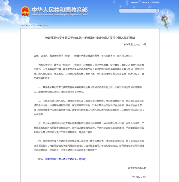 据悉,供需对接就业育人项目系教育部高校学生司组织,面向全国高校开放申请。其目是推动就业与培养有机联动、人才供需有效对接,深化产教融合校企合作,帮助用人单位培养和招聘更多实用型、复合型和紧缺型人才,促进高校毕业生更加充分更高质量就业。