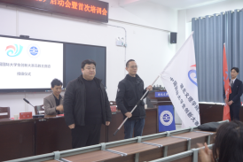 随后,耿校长为“青年红色筑梦之旅”赛道团队授旗,周校长为“高教主赛道”团队授旗。