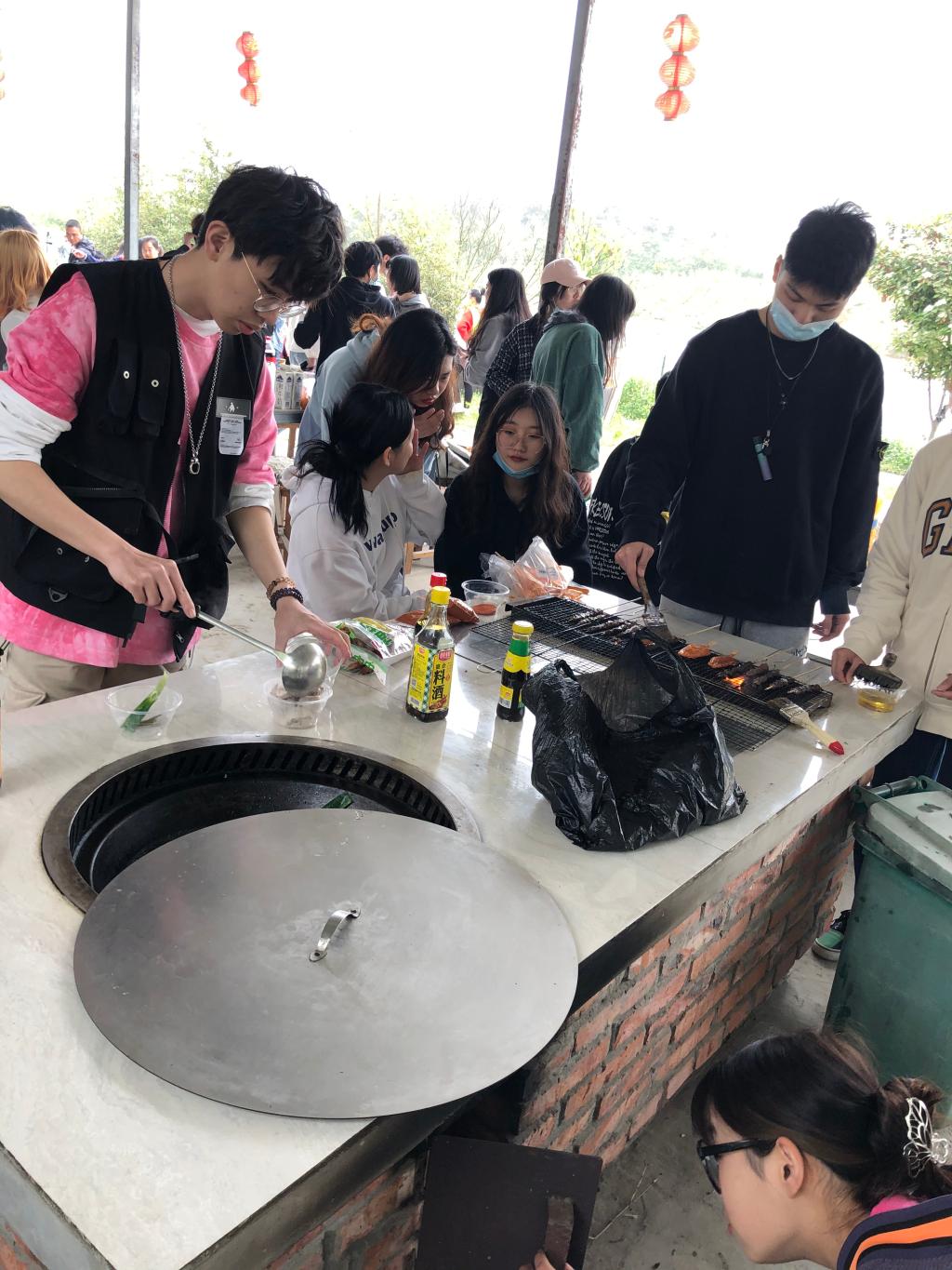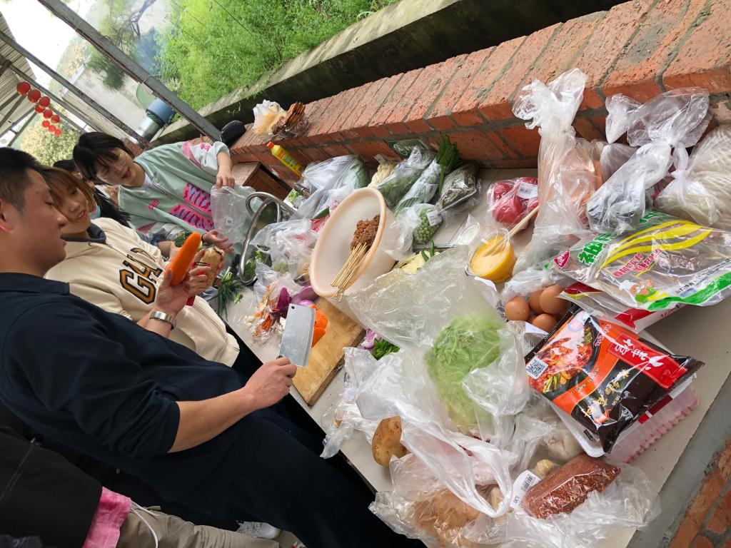 早上八点半20级各班班委在图书馆前中央花坛集合,由马晓璇老师带队出发,王丽君老师则是提前到达桃花岭迎接班委们。在活动中,师生共同动手准备食材,生火做饭,享受美食盛宴,大家倾心耳语,在放松了彼此心情的同时,增进互动、加深友谊,老师与同学们的欢歌笑语也为美丽的春色增加了一份意蕴。