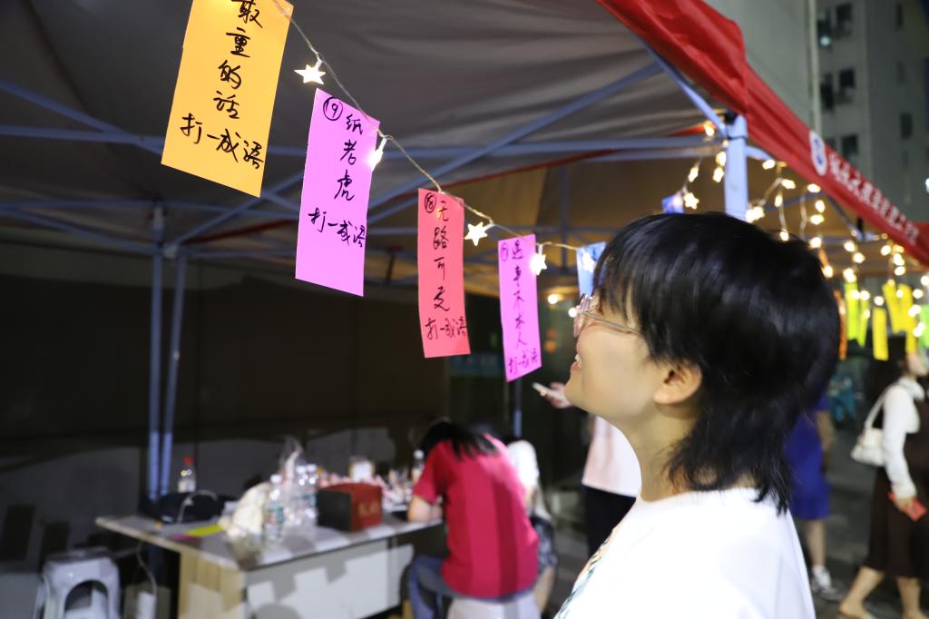 夜幕降临,中秋活动顺利开展。琳琅满目的祝福贴纸、灯谜竞猜卡片、星星灯吸引了路过同学们的围观。来自全校不同专业的同学通过此次活动寄托了对家乡情人的思念,写下了自己的小小心愿,同时增进了感情。活动中,同学们收获的不仅仅是中秋小礼品,还有远在他乡求学也能齐度中秋的浓浓氛围与美好祝福。