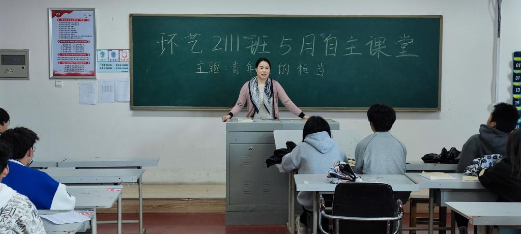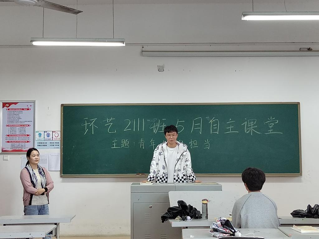 为迎接建团100周年,艺传系环境设计专业2111班于2022年5月23在四教329教室开展了以“青年人的担当”为主题的自主课堂。