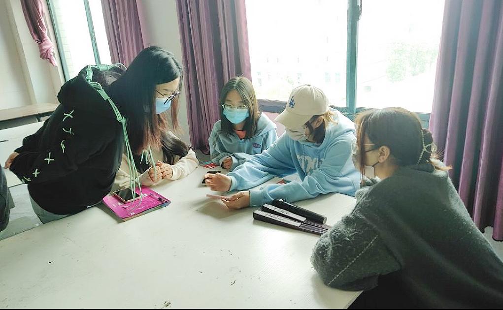 比赛中,班委先为同学们展示优秀作品,提供创作思路,打开同学们的创作思维,随后全班分成六个小组进行组内设计讨论,最后全体参赛选手相互展示自己的作品。