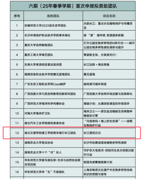 (艺传学院 朱锐 雷筱涵 朱富)近期,我们艺传学院青禾绿行长江团队以“长江漂流日记”为题,成功申报涓流行动“一个长江”大学生环保活动资助项目。