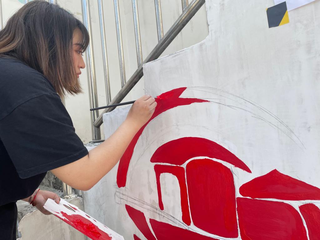 今年是建党100周年,习近平总书记强调:学史明理、学史增信、学史崇德、学史力行,学党史、悟思想、办实事、开新局,以昂扬姿态奋力开启全面建设社会主义现代化国家新征程,以优异成绩迎接建党一百周年。在建党百年之际,本次活动中党员同学们分组合作,在活动场地进行墙体绘制:构图、起草、描边、铺色等。墙绘以“党史学习园地”作为主题,扬旗风红船、和平鸽、彩虹波浪”等图案作为点缀,文字与图片相互融合为一幅完整的图画。志愿墙绘活动很好的发挥了艺术与传媒系同学的专业优势,也给了同学们不一样的体验,接触到了和以往纸上绘画、电脑作图所不同的东西。