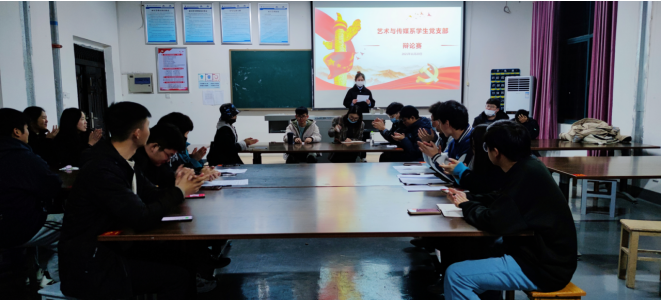 11月23日晚18:30,艺传系党支部首次开展辩论赛,本场辩论赛的辩题是:《疫情时期下经济与民生哪个更重要》。会议由视传1911陆锦华主持,评委嘉宾有高原老师,胡鑫鑫老师,文法系王鑫老师,参赛成员全体党员。