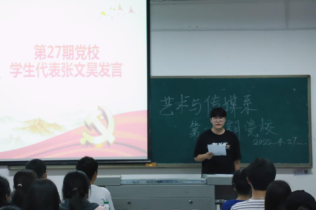 2022年4月27日,艺术与传媒系于四教419教室举行第27期党校开班仪式并开展第一次党课。本次开班仪式由本期党校班主任高原老师主持,共有69名入党积极分子参加。