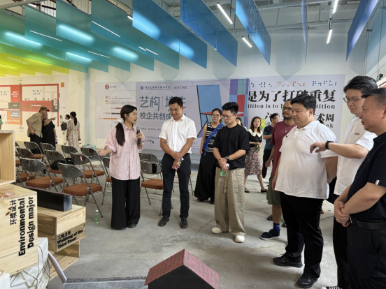 6月13日,党委书记叶永涛、校长杨海浪等一行赴603文创园,实地调研艺术与传媒学院《装饰与陈设设计》“一课一展” 暨校企共创成果展,并重点考察603文创园校企合作基地,就深化就业工作开展现场指导。